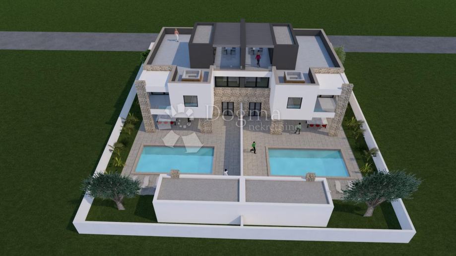 Prema projektu, iza kuće je planiran bazen, a također će biti izgrađena i konoba s roštiljem. Imate priliku ostvariti svoje kreativne ideje i prilagoditi prostor prema svojim željama.