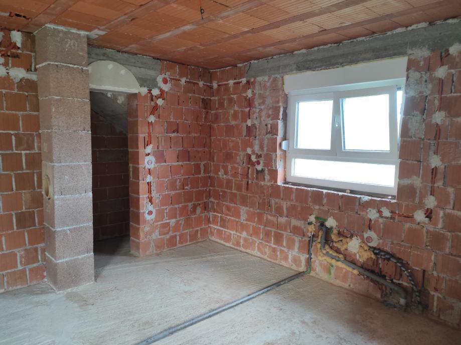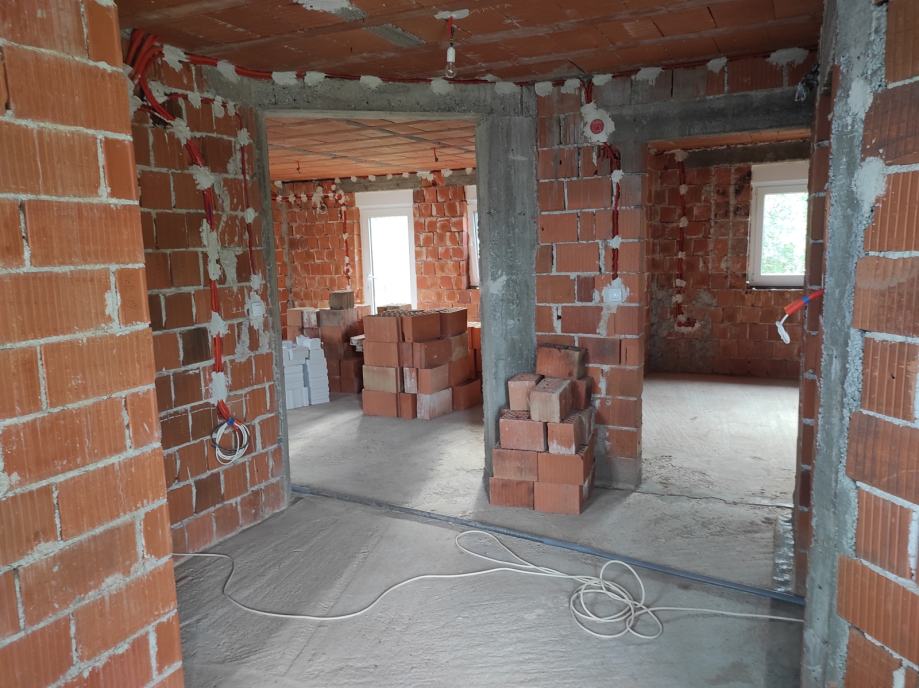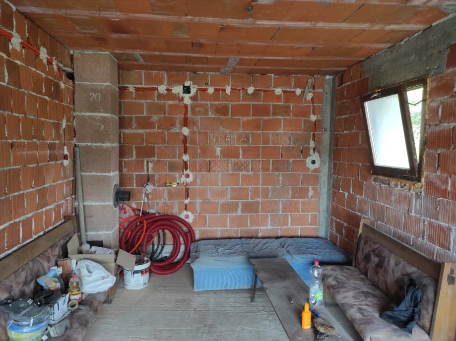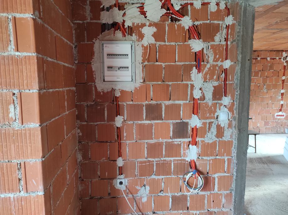- Kuća ima provedene strujne instalacije. Planirano je podno grijanje stoga svaka soba ima provedenu struju za regulator temperature.