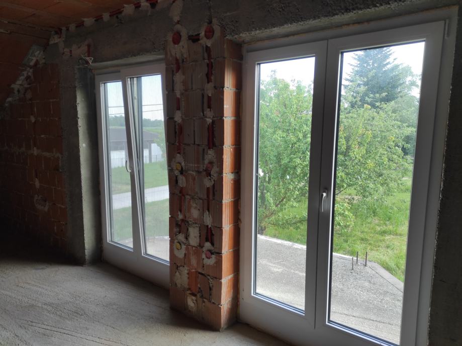 - Stolarija(2022.) je PVC Salamander 3-slojni. Iznutra bijela, izvana antracit boja. Prozori u prizemlju imaju rolete. Svi komarnici su fiksni osim onih na balkonskim vratima (plise). Garaža ima drvene prozore.