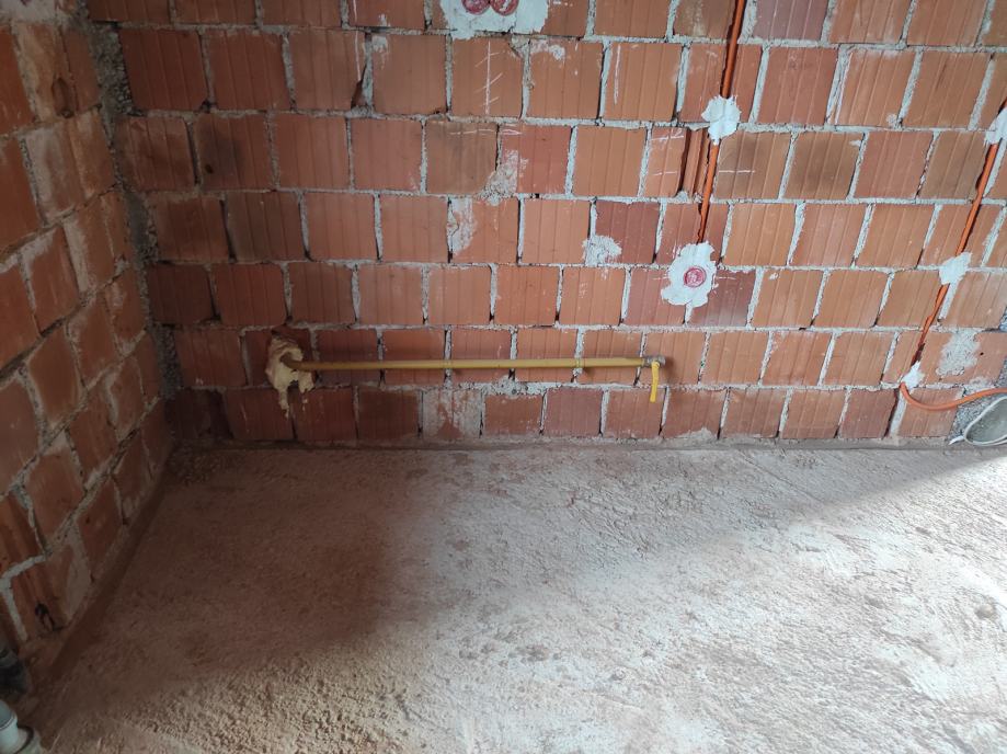 - Parcela ima i priključak na plin(2022.). Proveden je dolaz do kuhinje. Postoji cijev koja vodi od brojila do stražnje strane garaže gdje je planirana lugarnica samo ga je potrebno spojiti na postojeći sustav.