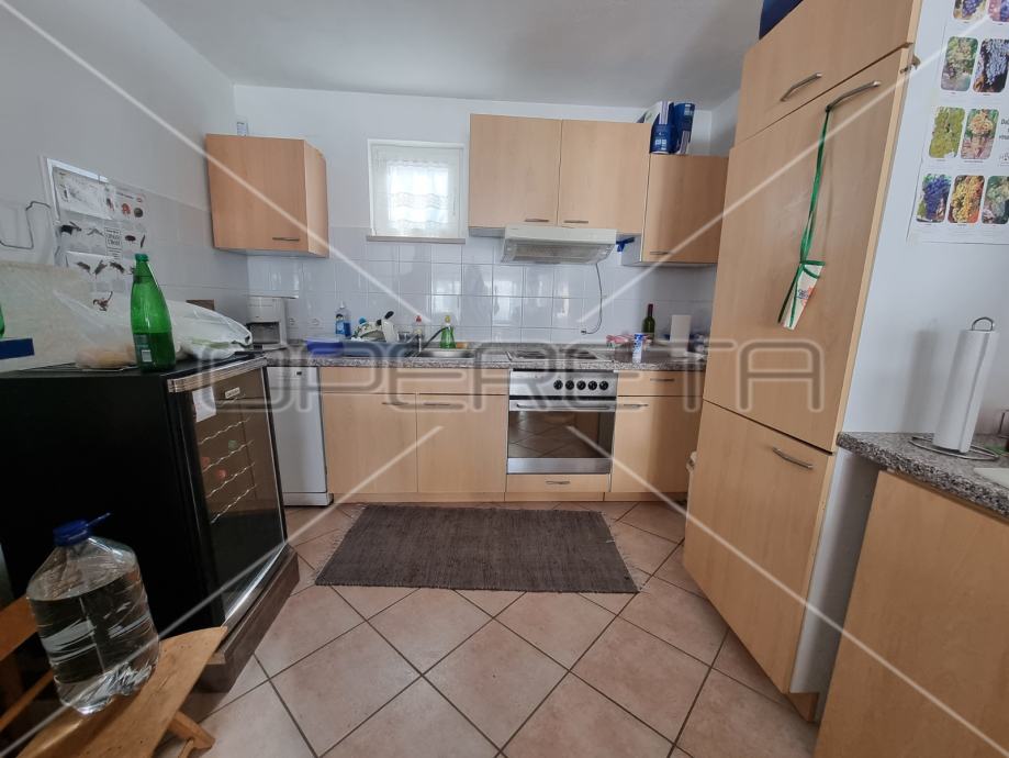 Suterenski dio kuće sadrži uređeni stan od 70m2 koji se sastoji od dnevnog boravka, zajedničkog prostora kuhinje i blagovaonice, spavaće sobe i kupaonice. Iz dnevnog boravka se pruža izlaz u dvorište u kojem ima dovoljno prostora za izgradnju bazena.
