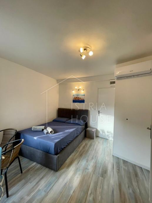Stan je u svojih 16 m2 odlično ukomponirao sve potrebno za ugodan boravak i odmor,odnosno tu je kupaonica, kuhinja sa blagavaonskim stolom i veliki bračni krevet te je kompletno klimatiziran.