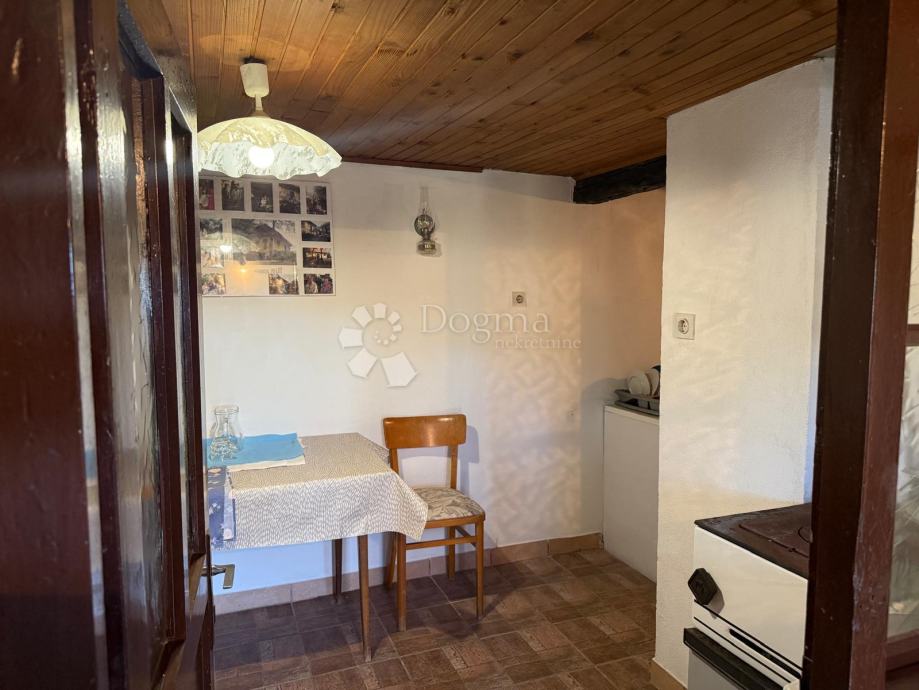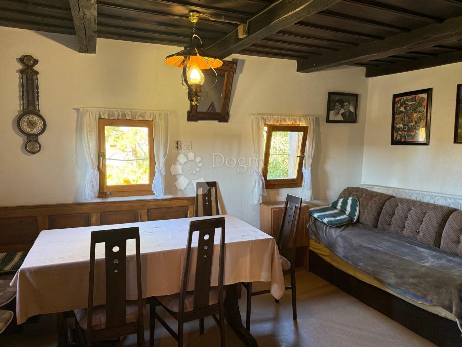 Ulaskom u prizemlje dočekuje vas hodnik koji vodi u veliki rustikalno uređen dnevni boravak, okupan prirodnim svjetlom, s pogledom na zelene brežuljke. Iz hodnika se ulazi i u šarmantnu kuhinju, manju spavaću sobu te praktičnu kupaonicu s tuš kadom i toaletom