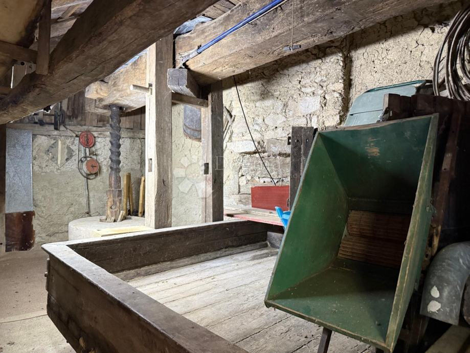 veliku prostoriju sa stoljetnom prešom za grožđe, još uvijek u funkciji – idealnu za vinske prezentacije, degustacije ili tematske turističke sadržaje. Tu se nalazi i originalni vinski podrum s bačvama, dodatna spremišta te još jedan toalet.