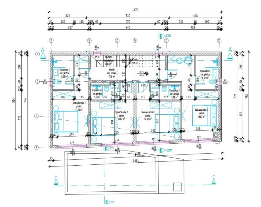 - 4 spavaće sobe, svaka s vlastitom kupaonicom