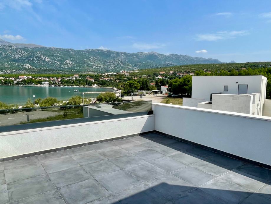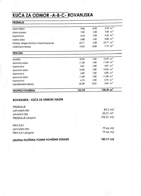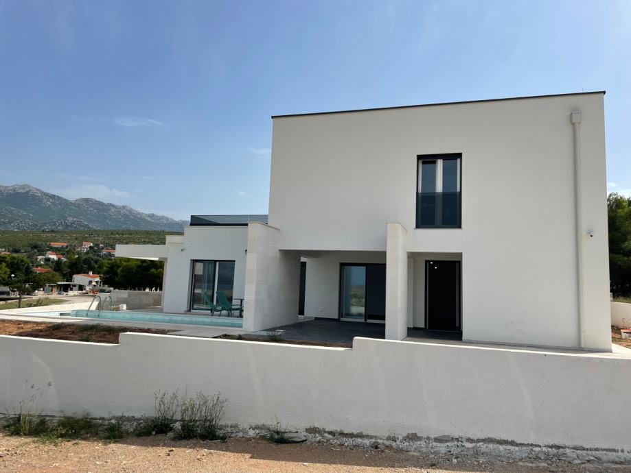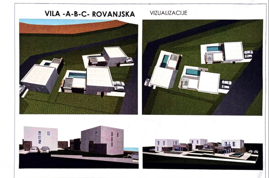 U Rovanjskoj, nedaleko od Zadra, u 1. redu do mora je smještena luksuzna, moderna villa sa bazenom. Izgrađena je prema izuzetno visokim standardima 2023 godine na zemljištu od 477 m2. Stambena netto površina od 138 m2 izvedena je na dvije etaže - prizemlje i kat. Brutto površina je 167 m2.