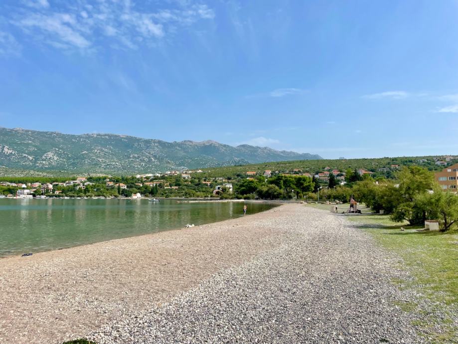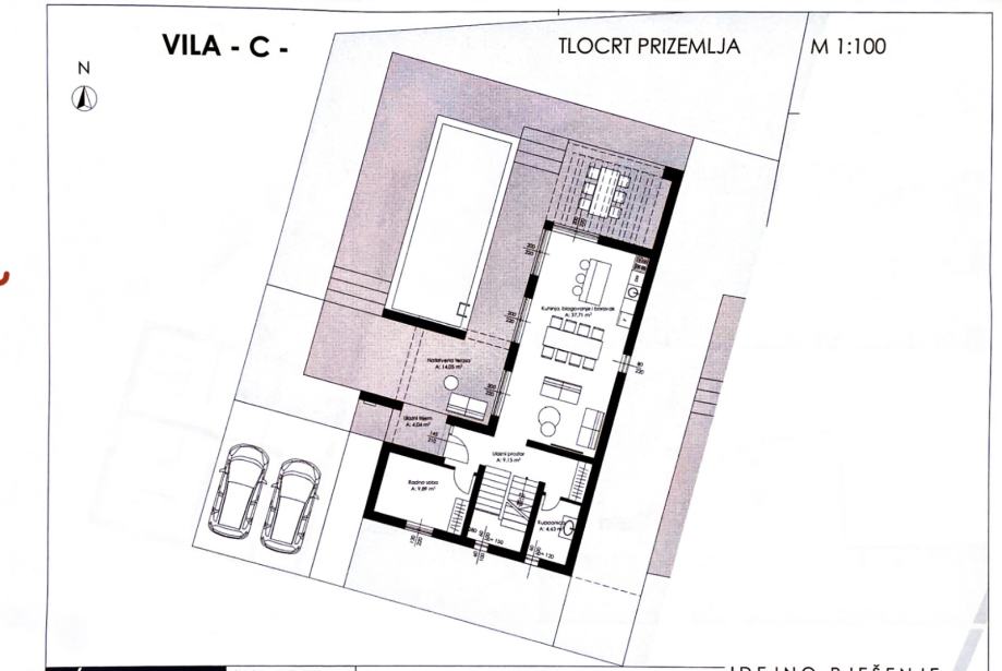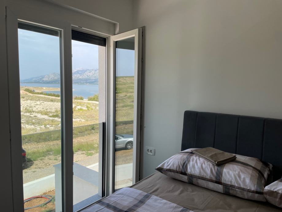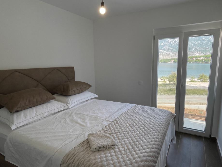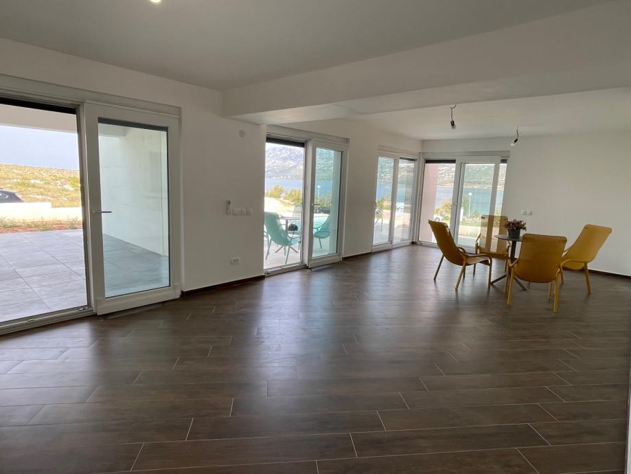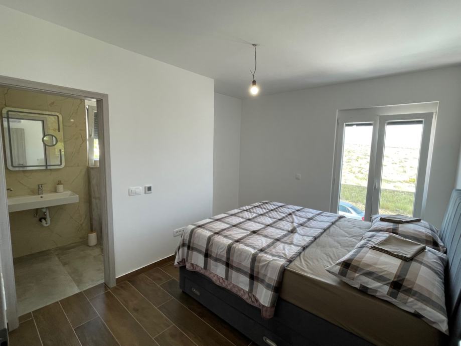Prizemlje čine dnevni boravak, kuhinja i blagovaonica otvorenog koncepta u kojima je jako puno prirodne svjetlosti. U prizemlju se također nalazi hodnik, jedno kupatilo sa tušem, te uredski prostor koji se svakako može koristiti kao dodatna spavaća soba. Iz dnevnog boravka ima više izlaza na prostranu terasu, te očaravajući pogled na more i Velebit. U dvorištu se nalazi veliki vanjski roštilj, prostor za druženje, vrt, te prelijepi, tirkizni bazen.