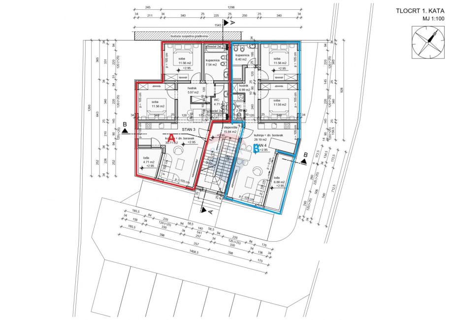 Radi se o stanovima idealne jugoistočne ekspozicije s velikim prozorima koji se sastoje od 2 velike spavaće sobe,kupatila,hodnika,sanitarnog čvora te dnevnog boravka i kuhinje s izlazom na lođu.
