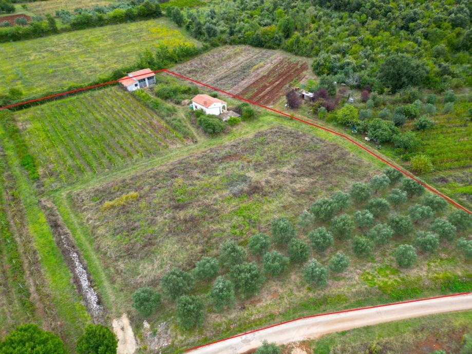 Na 10350m2 poljoprivrednog zemljišta koje je većinom pod vinogradom i 30-ak maslina nalaze se 2 legalizirana objekta,