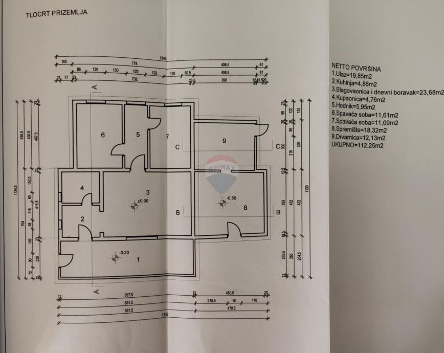 Radi se o samostojećoj kući prizemnici površine 113m2,koja se sastoji od dnevnog boravka,kuhinje,2 spavaće sobe,kupaonice i velike natkrivene terase.