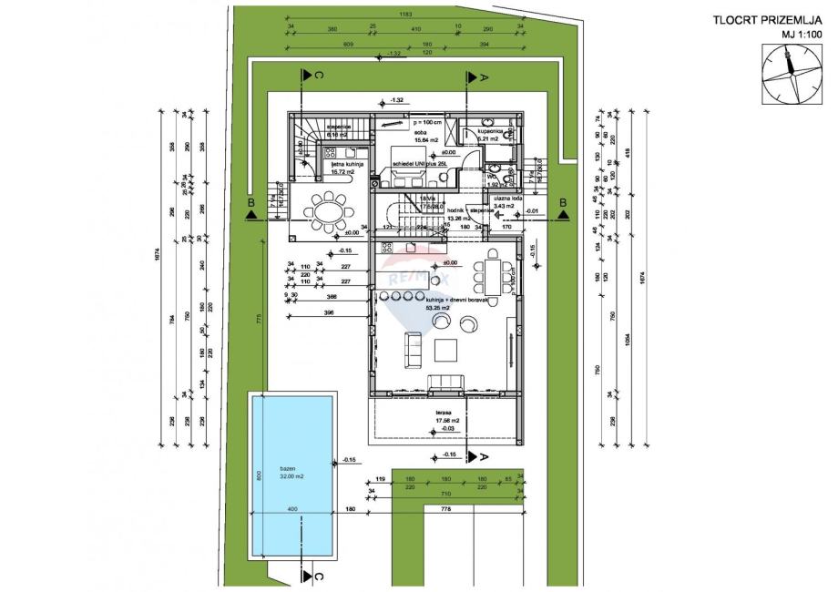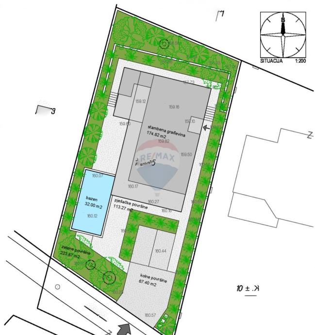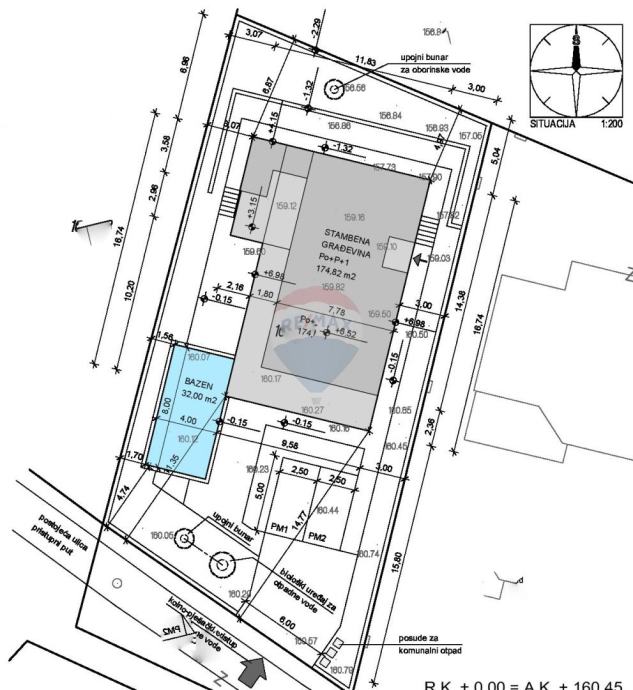 Kuća će se sastojati od podruma,prizemlja i kata,ukupne površine 256 m2.