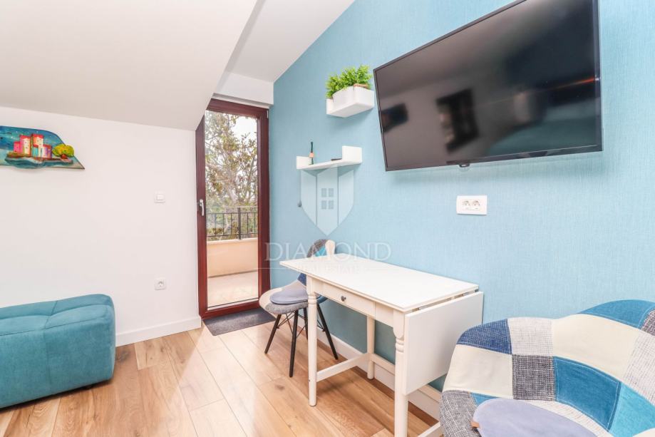 Na svega par minuta vožnje od centra grada Rovinja sa starogradskom jezgrom koju iz godine u godinu posjećuje sve više ljudi kako bi uživali u šetnji kamenim uličicama, nalazi se ovaj atraktivan stan u manjoj zgradi. Smješten je u predgrađu te je izvrsno povezan s ostatkom grada. Sadržaji poput trgovačkih centara i slično su na 500 metara udaljenosti.