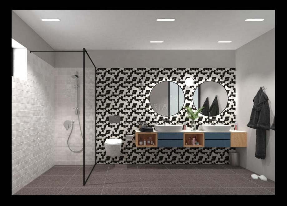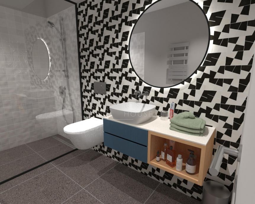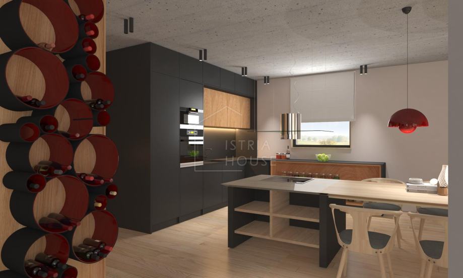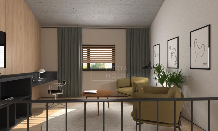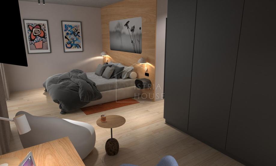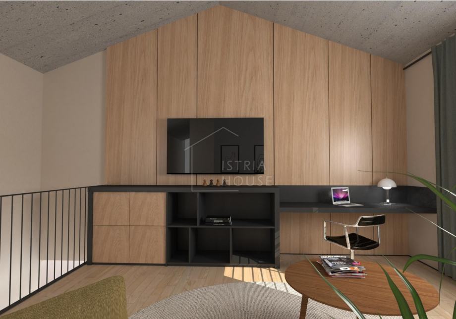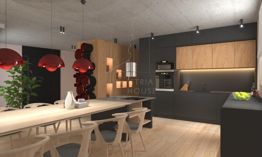 Interijerom dominira vrhunski dizajnerski namještaj i oprema visoke kvalitete a kupac se u ovom trenutku može uključit u odabir svih interijerskih stavki prema svojim željama. Na renderu je prikazano jedinstveno dizajnersko rješenje premium kvalitete poznatog arhitektonskog studija.