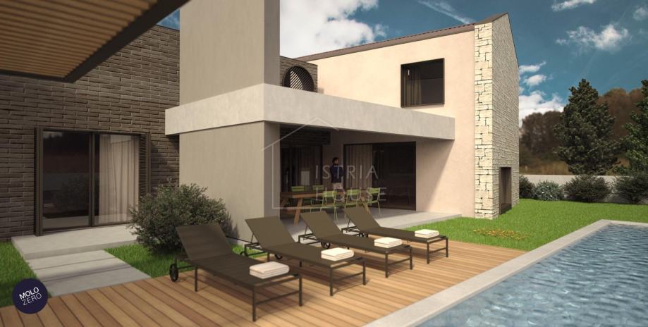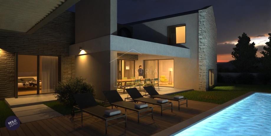 U neposrednoj blizini centra prodaje se impozantna dizajnerska vila sa bazenom trenutno u fazi izgradnje koja je planirana za kraj 2025- te godine.