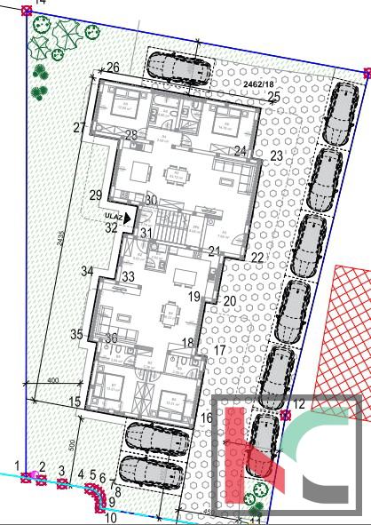 Zgrada sa sveukupno 6 stambenih jedinica, kvalitetne gradnje te luksuznijeg tipa, podno grijanje predviđeno u svim prostorijama te klimatske jedinice. Završna faza uključuje svu stolariju, vanjsku te unutarnju, sanitarije, kompletno obložene podove kvalitetnom keramikom, klimatske jedinice, uređen okoliš te vanjski dio vrta, ulazna protuprovalna vrata.