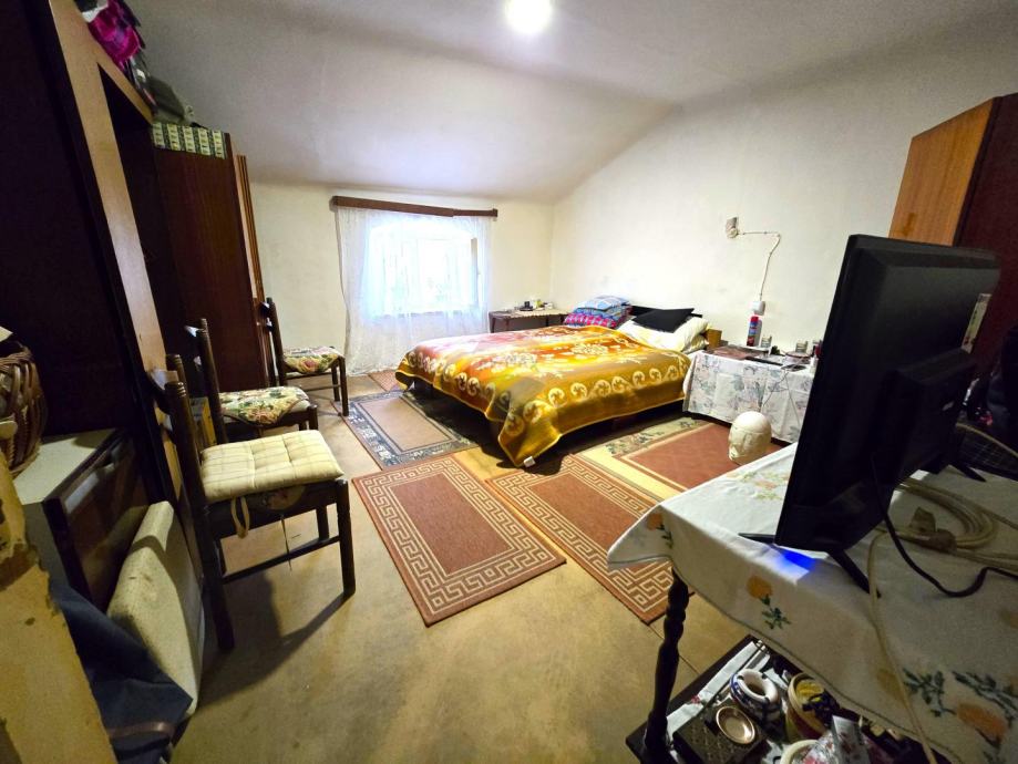 Na vrhu stubišta desno nalazi se velika spavaće soba,lijevo se nalazi hodnik,kuhinja,dnevni boravak,dodatna spavaća soba i kupaonica.