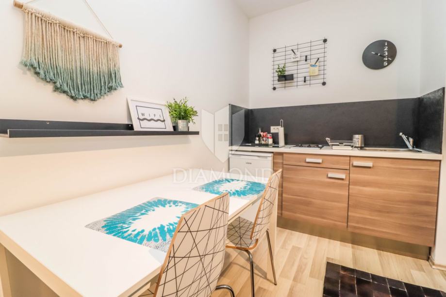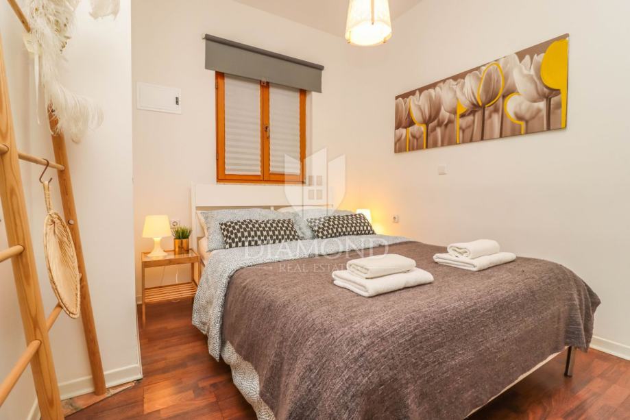 Na jednoj od neponovljivih lokacija u ovom prekrasnom gradu nalazi se ova apartmanska kuća koja traži svog novog vlasnika. Neponovljiva lokacija je iz razloga što je u mirnoj ulici, no opet u samom centru na korak od svih potrebnih sadržaja poput trgovina, ugostiteljske i turističke ponude.