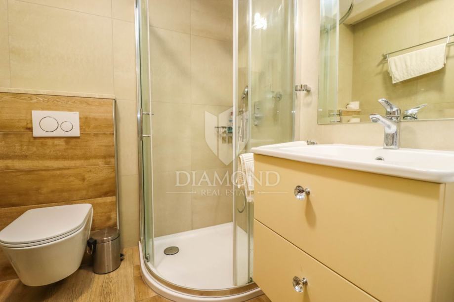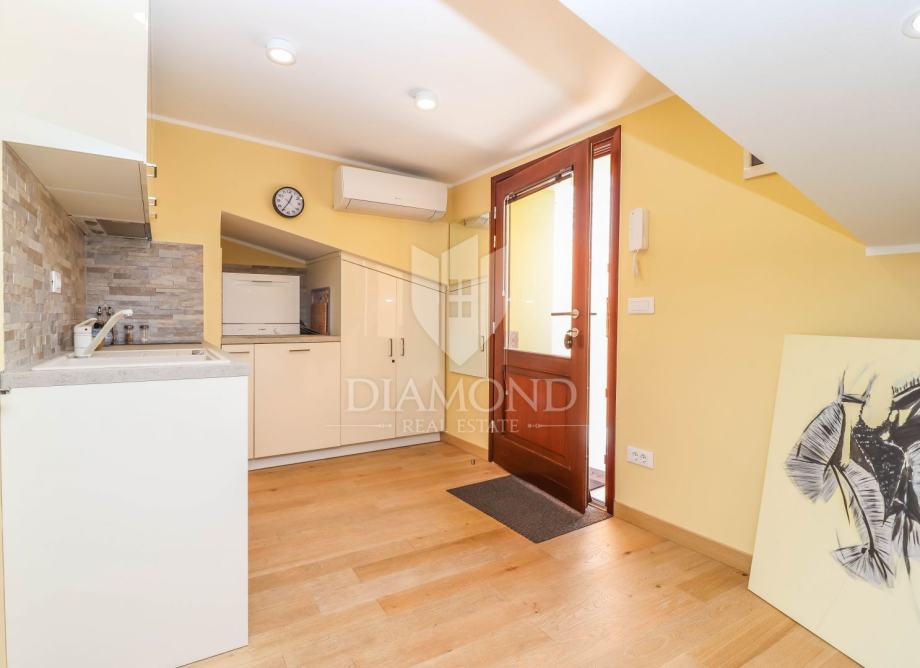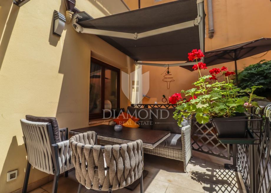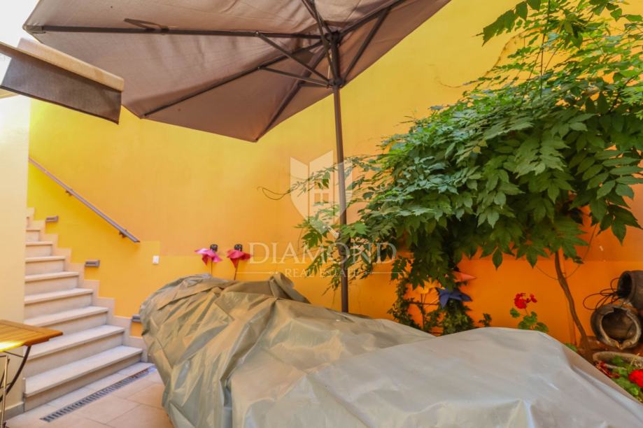 Komfor u centru zbivanja, vlastito malo dvorište, zelenilo te mir glavni su atributi koji opisuju ovu nekretninu. Proteže se kroz tri etaže, sveukupne kvadrature stambenih jedinica oko 200m2, dok dvorište ima 24m2. Svaka stambena jedinica ima svoju prostranu terasu koja je opremljena sa kvalitetnim tendama kako bi svojim korisnicima omogućile željeni hlad. Prizemlje ima uređen studio koji se sastoji od kuhinje s blagovaonicom te dnevnim boravkom, a krevet je odvojen tako da postoji mogućnost da se zatvori i uredi kao spavaća soba jer je taj dio vrlo prostran. Na prvom katu se nalazi jedan studio apartman sa kuhinjom, blagovaonicom, malom ugradbenom ostavom, spavaćim dijelom te kupaonicom. Posebno je to što uz terasu, ovaj studio apartman ima i balkon koji gleda na dvorište. Na drugom katu, visokom potkrovlju je također studio kao i na prvom, uz malo drugačiji raspored. Svaki studio apartman ima svoj zasebni ulaz.
