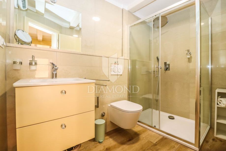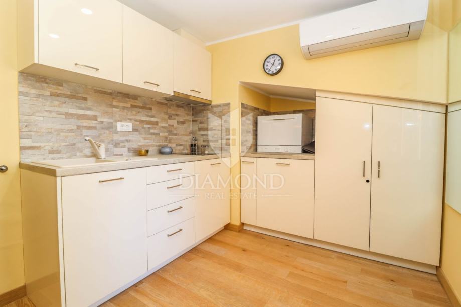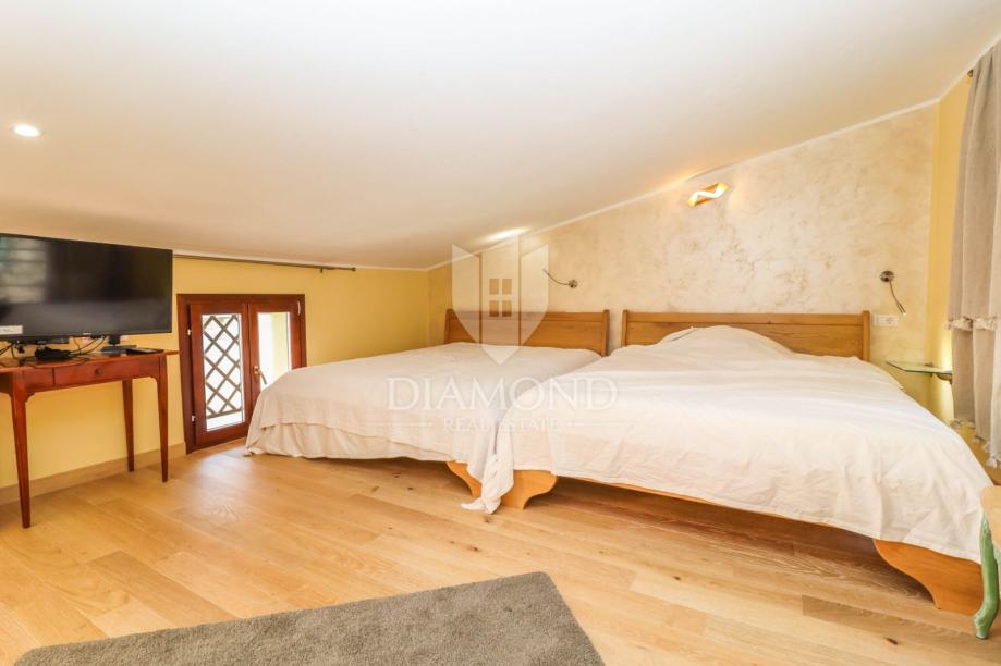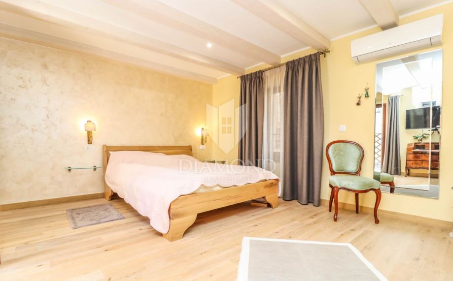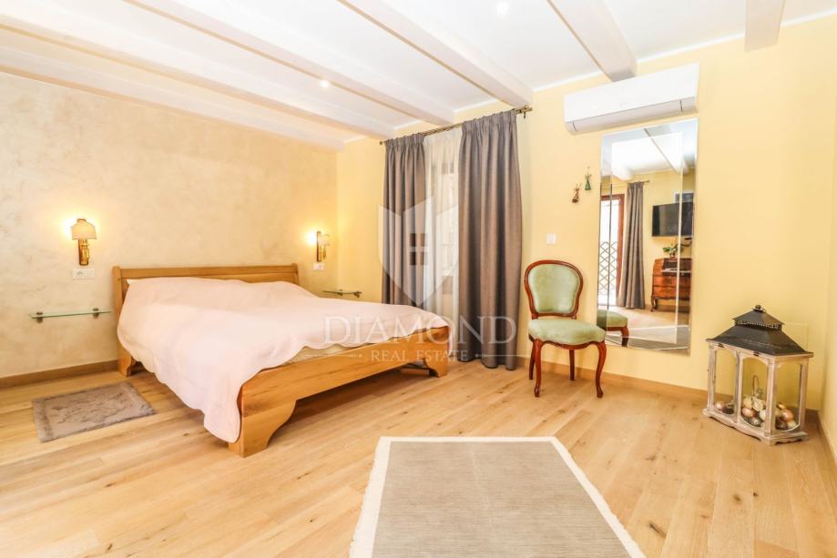 Sve je potpuno renovirano i uređeno prije dvije godine, te je korišten samo visokokvalitetni materijal i namještaj. Pazilo se na svaki detalj te se maksimalno iskoristio prostor. Sve su kuhinje rađene po mjeri, kreveti su od punog drva, vanjsko stepenište i dvorište je popločano kamenom. Postavljeno je podno grijanje u prizemlju dok studio apartmani imaju grijanje putem klima uređaja.
