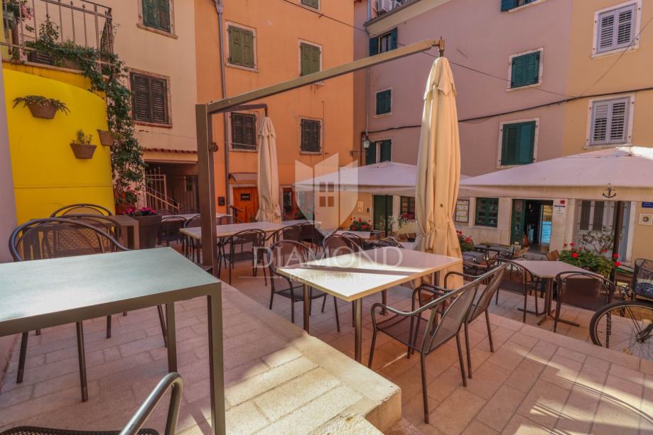 S obzirom da je to davnih godina bila obiteljska kuća sa spaciom (stara konoba/vinoteka), ima savršenu bazu koja bi uz malo adaptacija ponovno postala kuća za odmor u centru ili pak kuća za život, ovisno o željama kupca, a ima i dva ulaza s ulice. Ima kvadraturu od 120m2 te se proteže na dvije etaže, prizemlje i kat. U prizemlju se nalazi velika kuhinja, mala sala sa šankom te sanitarnim čvorom, dok se na katu nalazi velika sala, dva wc-a i garderoba. S obzirom da sala ima funkcionalni kamin može se raditi u zimskim mjesecima, a ukoliko se kuća uredi kao stambena jedinica, kamin pruža jedan poseban ugođaj i toplinu. Također, s obzirom na raspored ulaza s ulice i raspored prostorija, moguća je pretvorba i u dvije stambene jedinice.