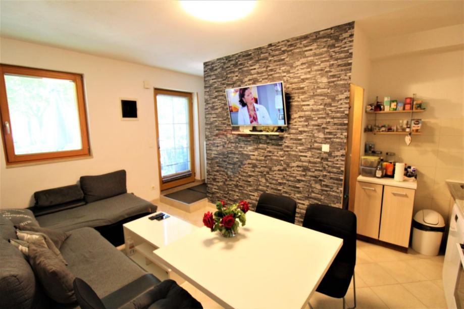 U prizemlju se nalazi dnevni boravak s kuhinjom i špajzom,