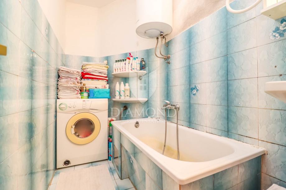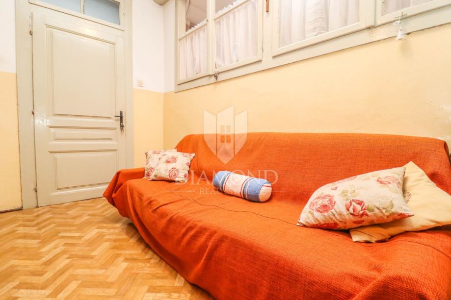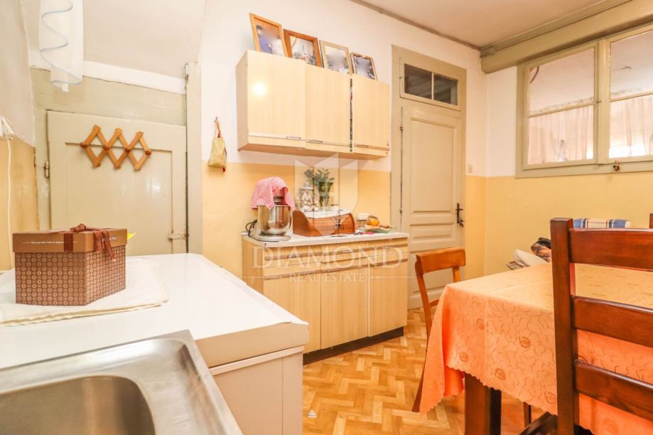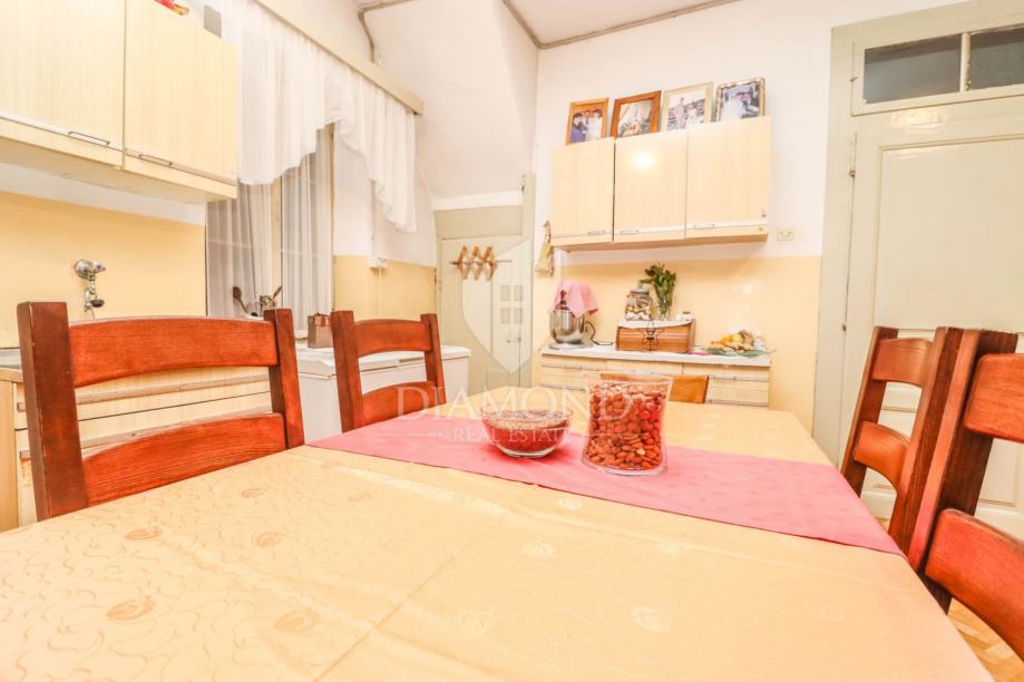 Stan se nalazi na drugom katu, te je u svoju kvadraturu od 59m2 smjestio kuhinju sa blagovaonicom, jednu spavaću sobu, dnevni dio koji se trenutačno koristi kao dodatna spavaća soba te kupaonicu i zasebni sanitarni čvor. Visoki stropovi te prozori koji gledaju na ulicu i na more, odlike su stana te je kao takav izvrsna investicija.