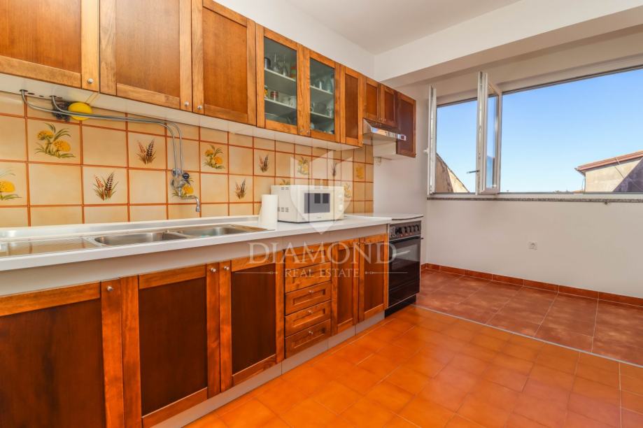 Stan je održavan, te u svojih 67m2 ima kuhinju s blagovaonicom, dnevni boravak, spavaću sobu te kupaonicu. Zbog svoje izuzetne pozicije iz kuhinje se pruža predivan pogled na more i starogradsku jezgru, dok se sa terase vidi ostatak grada. Izlaz na terasu imaju spavaća soba i dnevni boravak. Stan je izuzetno osvijetljen tokom cijelog dana.
