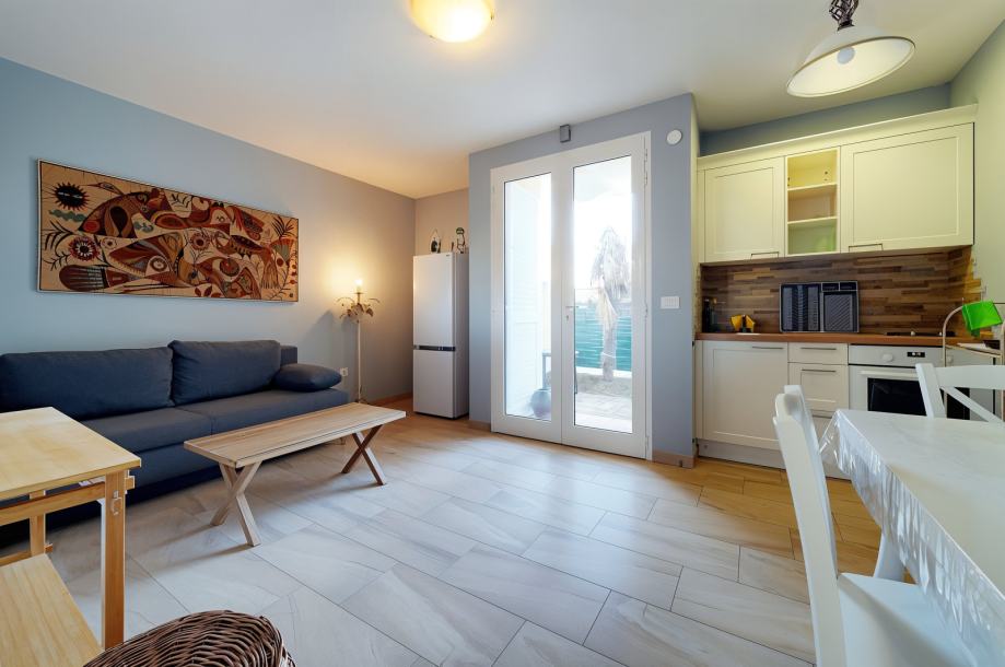 Sadržaj: Sastoji se od dnevnog boravka s kuhinjom, zasebne spavaće sobe i kupaonice.Klima uređaj, moderni aluminijski prozori i kompletan namještaj.Parking: Privatno parkirno mjesto uključeno je u cijenu.