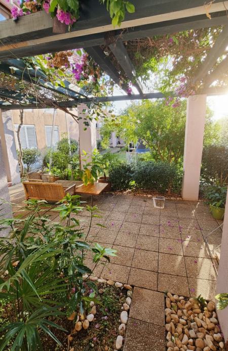 Privatna oaza: Stan posjeduje vlastitu terasu i vrt, idealno za boravak na otvorenom.