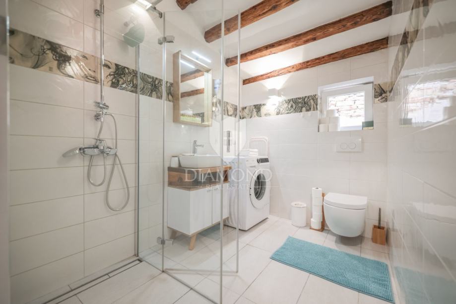 Veći stan (30 m²) je prostraniji, istog stila, također određeni dizajnerski elementi prevladavaju prostorom. Ima simpatičan pogled na zvonik crkve Sv.Eufemije i autohtone rovinjske krovove i šarene zgrade. Stan ima dvije klime, dva TV-a, perilica posuđa, perilica rublja, novu kuhinjsku ploču, veš mašinu.
