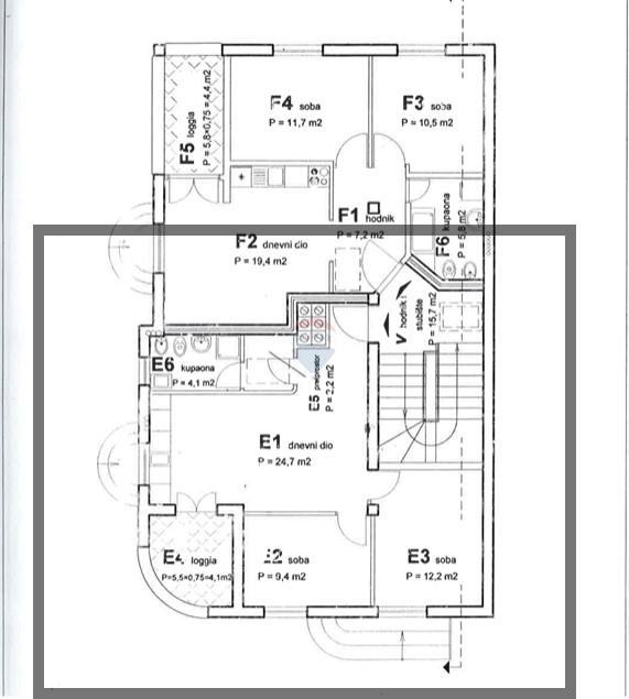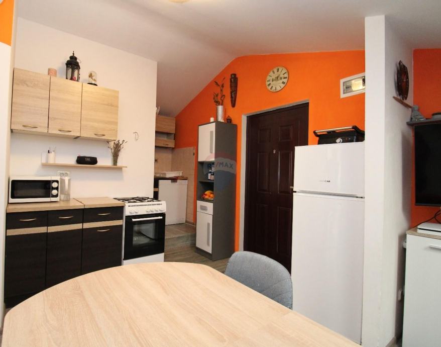 Riječ je zapravo o dvije odvojene stambene jedinice. Prvi stan od 63 m² se sastoji od prostranog dnevnog boravka, kuhinje s blagovaonicom, spavaće sobe, kupaonice i lijepe osunčane terase te je opremljen klimom i peći na drva.
