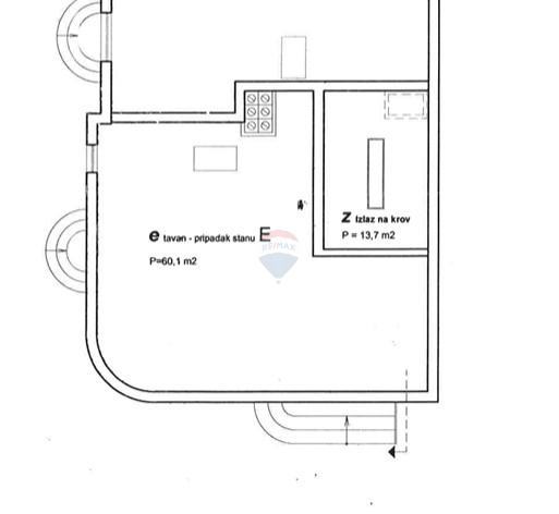 Drugi stan koji se nalazi u potkrovlju ima 35 m² i sastoji se od dnevnog boravka s kuhinjom i blagovaonicom, dvije spavaće sobe i kupaonice.