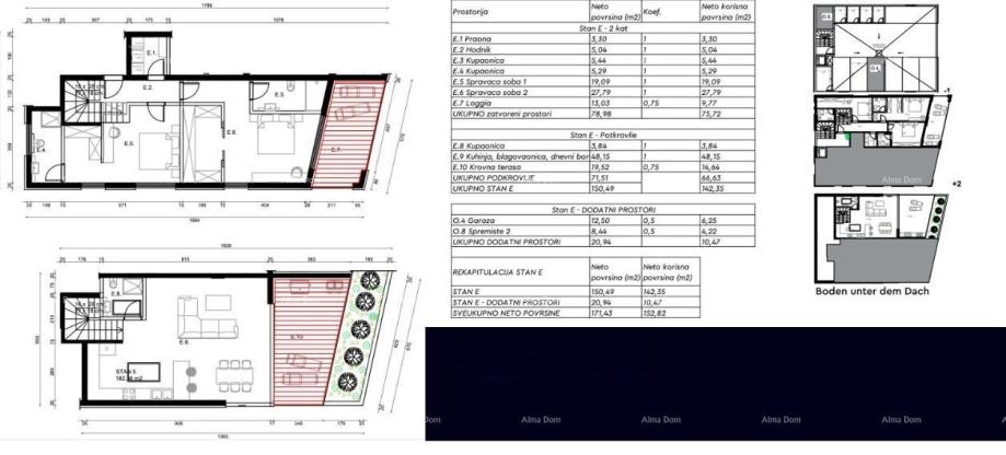 Sveukupna obračunska površina stana iznosi 152,82 m2.