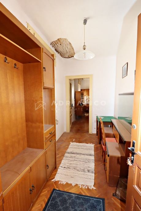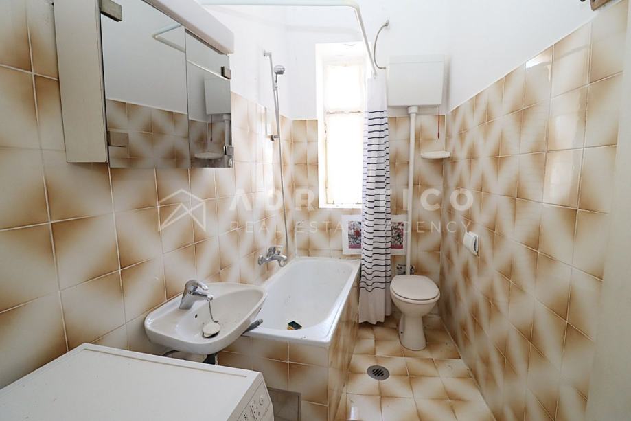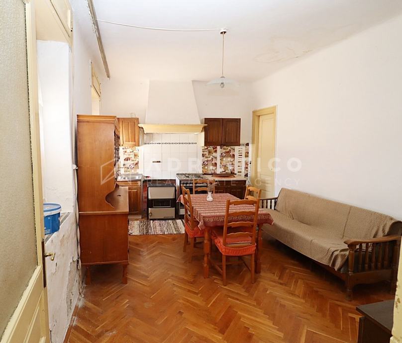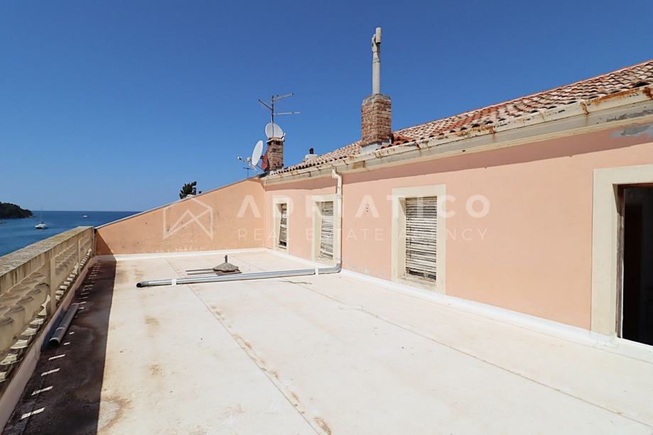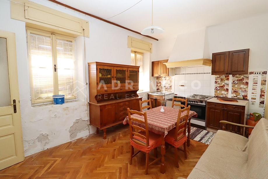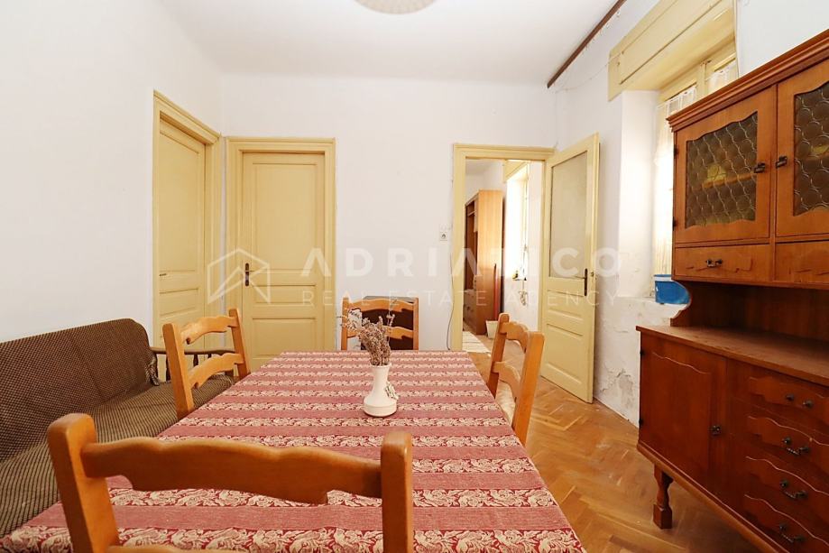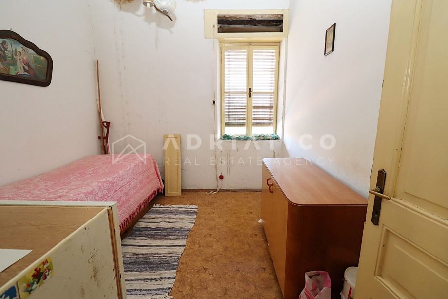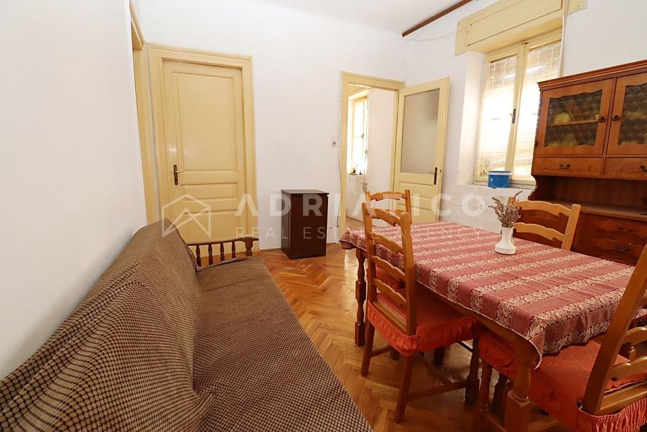 Stan je za potpunu renovaciju, što budućem vlasniku pruža mogućnost vlastitog redizajna, a sastoji se od ulaznog predsoblja, dnevnog boravka, blagovaonice i kuhinje u jednom, dvije spavaće sobe, kupaonice, ostave u podrumu te pravo korištenja fantastiče terase s nevjerojatnim panoramskim pogledom na more.