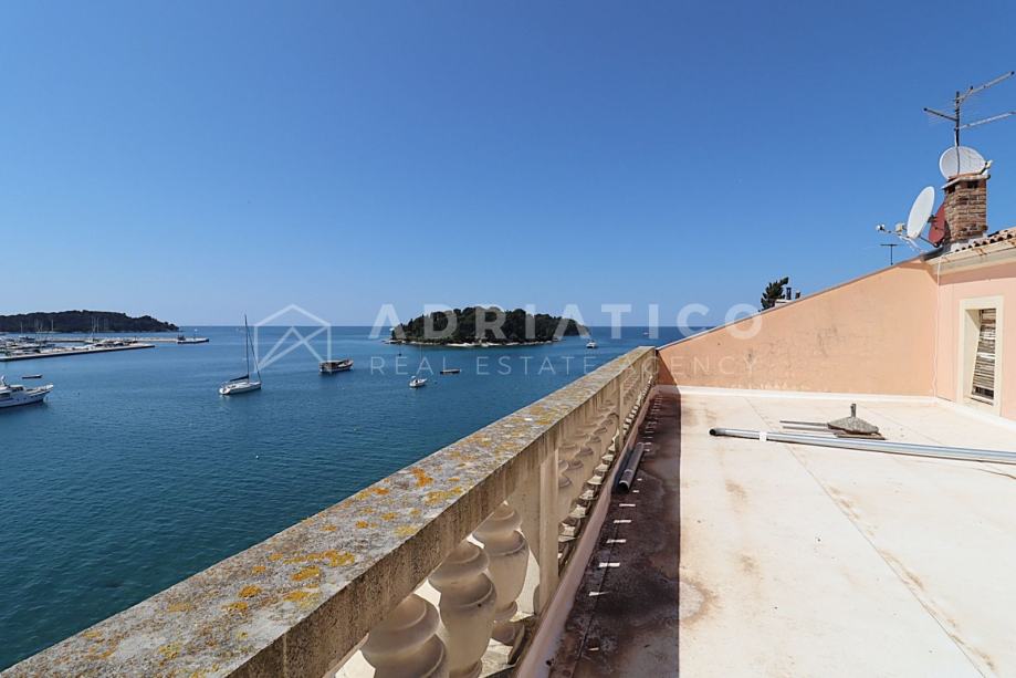 U samom centru Rovinja, prvi red do mora, prodaje se dvosoban stan površine 64m2 na trećem ujedno i zadnjem katu austrougarske vile.