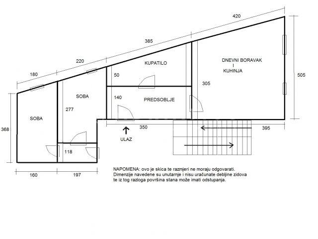 U samom centru čarobnog Rovinja, na drugom katu zgrade smjestio se ovaj stan površine 54m2, a sastoji se od kuhinje i blagovaonice, dvije spavaće sobe, kupaonice, hodnika i malog potkrovlja.