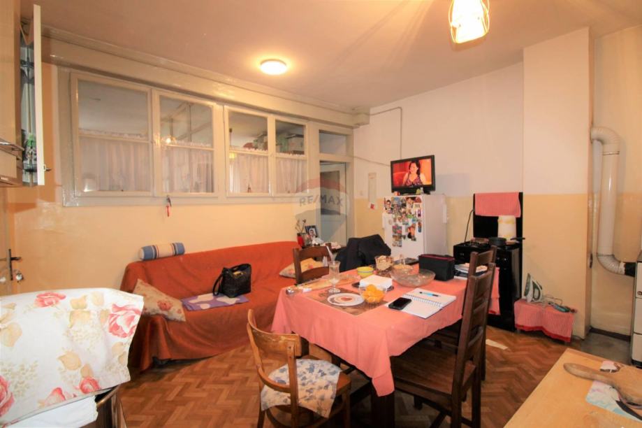 Stan se sastoji od ulaznog hodnika,kupatila I nužnika,dnevnog boravka sa kuhinjom I 2 spavaće sobe.