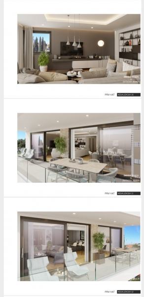 Prostrani apartmani osmišljeni su u svakom detalju i izgrađeni su s visokokvalitetnim materijalima. Sastoje se od ulaznog hodnika, otvorene kuhinje, blagovaonice i dnevnog boravka otvorenog prema terasama, gostinjskog WC-a, ostave i 2 ili 3 spavaće sobe s garderobom i vlastitim kupaonicama.
