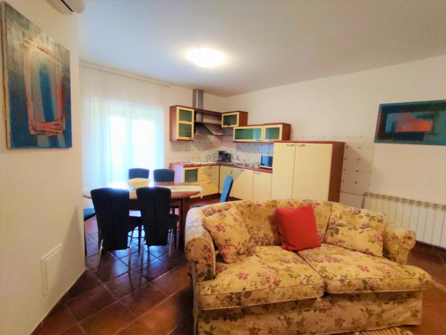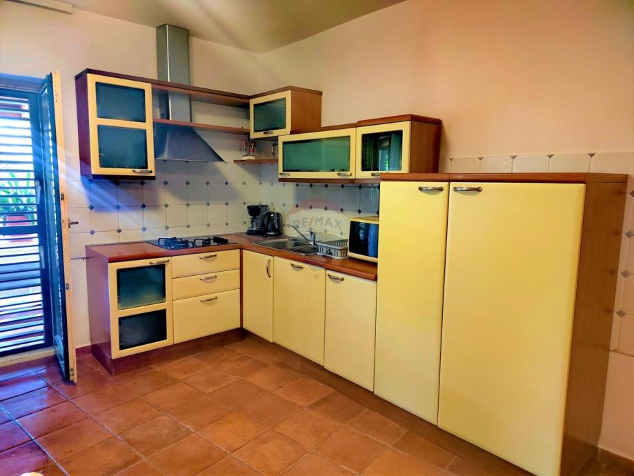 Sastoji se od ulaznog predprostora,kupatlia,velikog dnevnog boravka s kuhinjom,1 spavaće sobe -površine 52m2,natkrivene terase od 14 m2,