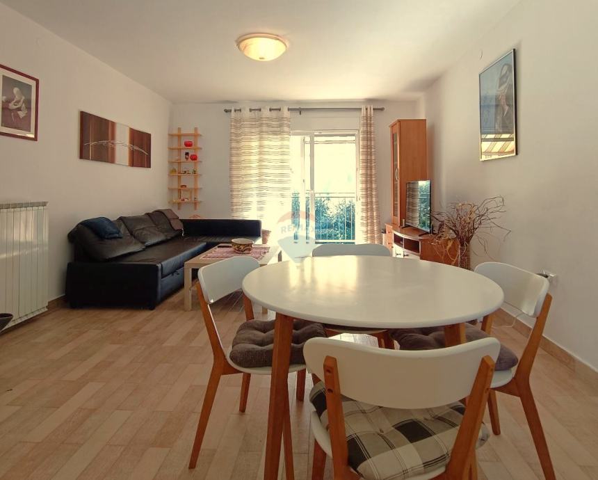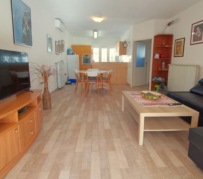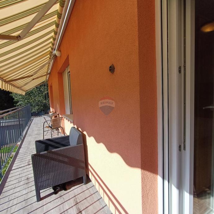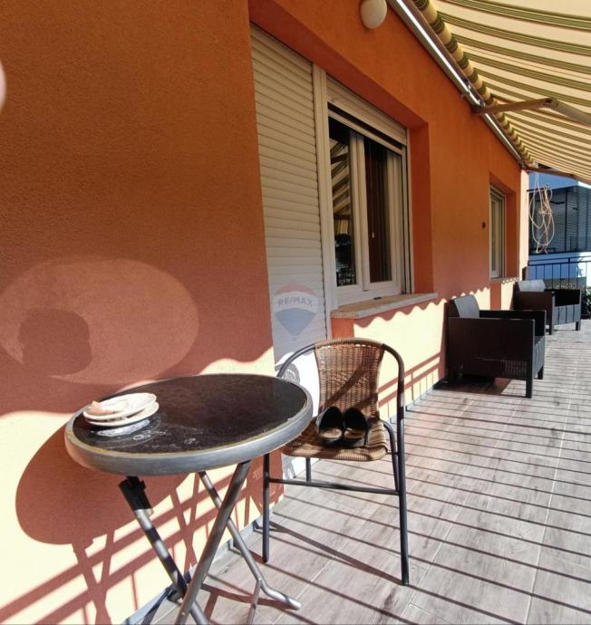 Iz dvije spavaće sobe i dnevnog prostora se izlazi na lijepu veliku terasu s novom tendom.