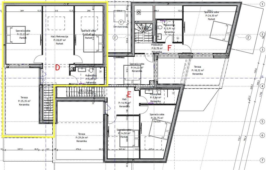 Na drugoj etaži nalaze se 2 spavaće sobe, kupaonica, hall koji se može iskoristiti kao prostor za rekreaciju ili bilo koju drugu namjenu, te velika terasa.