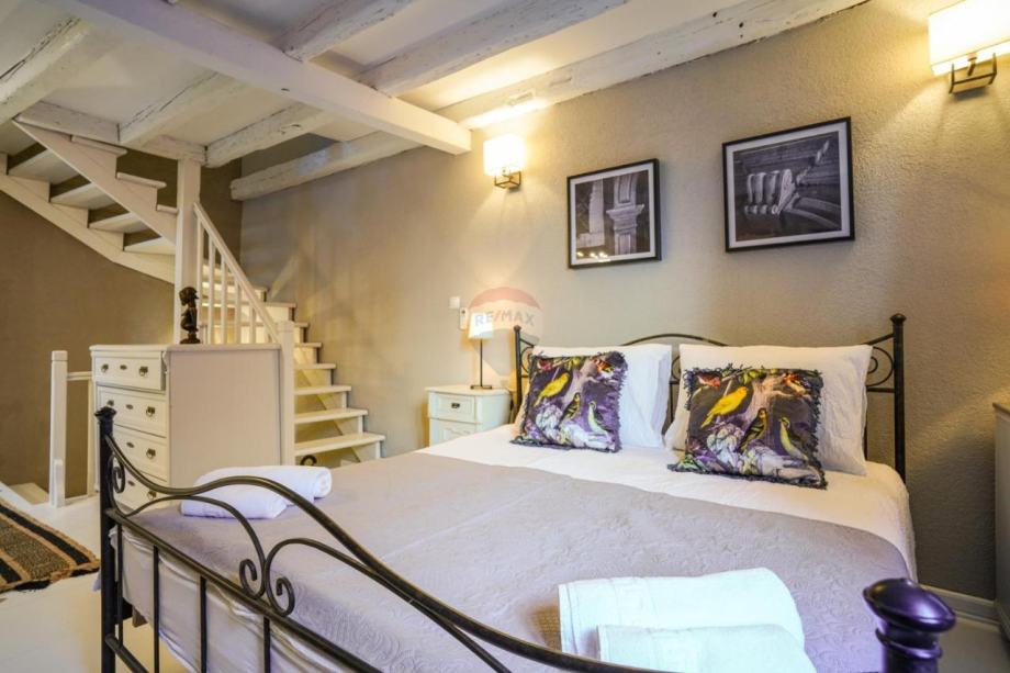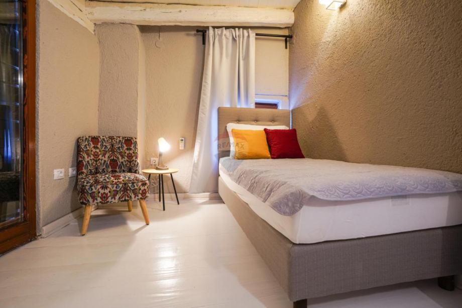 Kuća je uređena u modernom stilu međutim zadržani su tipični elementi rovinjskih kamenih kuća koji joj daju poseban šarm.