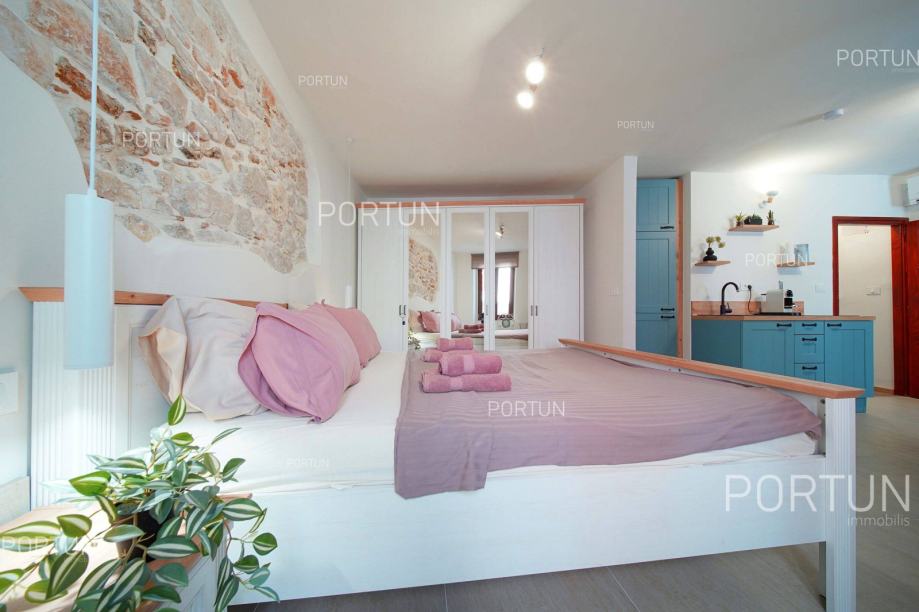 U srcu Rovinja, na drugom katu obnovljene kamene kuće, prodaje se šarmantan stan s jedinstvenim spojem tradicije i modernog komfora. Stan je udaljen svega 400 m od mora i plaže, u mirnoj ulici u neposrednoj blizini svih potrebnih sadržaja. Ova nekretnina idealna je prilika za one koji traže udoban dom ili investiciju za odmor u jednom od najpoželjnijih dijelova Istre.Stan površine 37 m2 smješten je na 2. katu srednjovjekovne kamene kuće, u samoj povijesnoj jezgri Rovinja. Sastoji se od dnevnog boravka s kuhinjom i blagovaonicom, jedne spavaće sobe, kupaonice s walk in tušom i hodnika. Zahvaljujući zapadnoj orijentaciji, stan je okupan prirodnim svjetlom tijekom cijelog dana.Stan se prodaje potpuno namješten, uključujući kvalitetnu drvenu stolariju s dvostrukim ostakljenjem, klasična sobna vrata i drvena ulazna vrata. Podne obloge izvedene su od vrhunskih keramičkih pločica. Stan je opremljen klimatizacijom i električnim bojlerom za toplu vodu.Rovinj je jedan od najljepših gradova na obali Istre, poznat po svojoj slikovitoj starogradskoj jezgri, kamenim ulicama i bogatoj kulturnoj baštini. Stan se nalazi u mirnom dijelu grada, idealnom za one koji žele uživati u blizini mora i svih gradskih pogodnosti, a da pritom imaju svoj miran kutak. Udaljenost do plaže je samo 400 m, dok se svi važni sadržaji nalaze na pješačkoj udaljenosti. Lokacija savršeno spaja praktičnost i šarm mediteranskog života.Ako želite saznati više ili dogovoriti razgledavanje ove nekretnine, slobodno nas kontaktirajte — rado ćemo vam pružiti dodatne informacije!KLJUČNE OSOBINE✔ Plaža 400 m ✔ 2. kat✔ 1 Spavaća soba | 1 Kupaonica✔ Temeljito obnovljeno 2023. g.✔ Potpuno opremljeno za iznajmljivanje. ✔ Kategorizacija: 3 Zvjezdice.