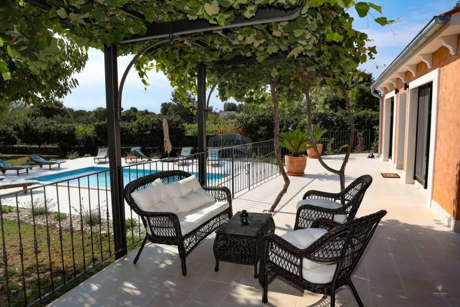 U dvorištu ordinira 32 m2 veliki bazen sa ugrađenom elektrolizom soli .