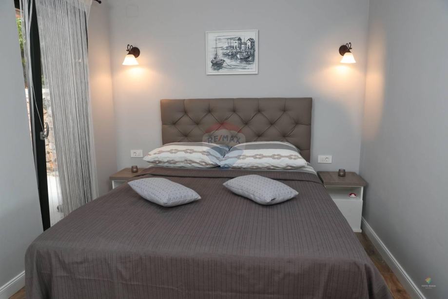Kuća se sastoji od ulaznog hodnika , kuhinje s blagovaonom i dnevnim boravkom te dvije spavaće sobe s kupatilom i jednog wc-a u prizemlju, na katu je još jedna velika spavaća soba s kupatilom , ukupna tlocrtna površina je 71 m2 što na dvije etaže daje cca 115 m2 korisnog prostora.