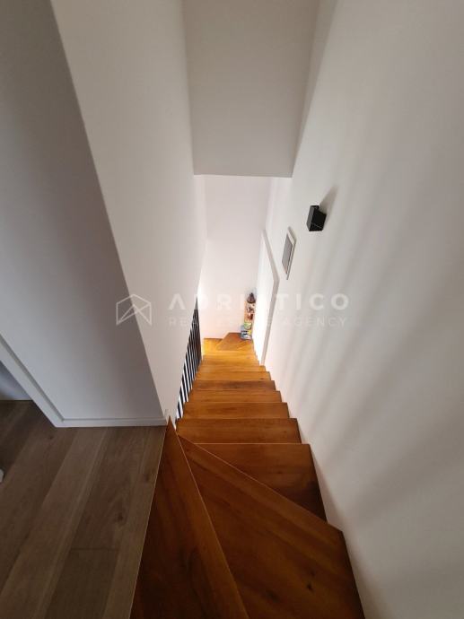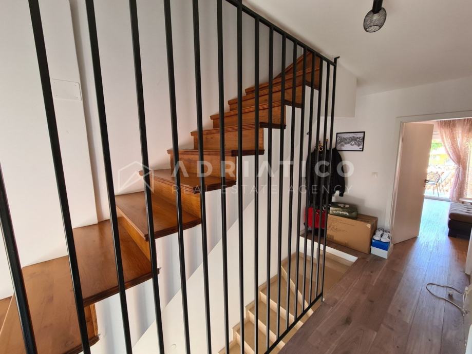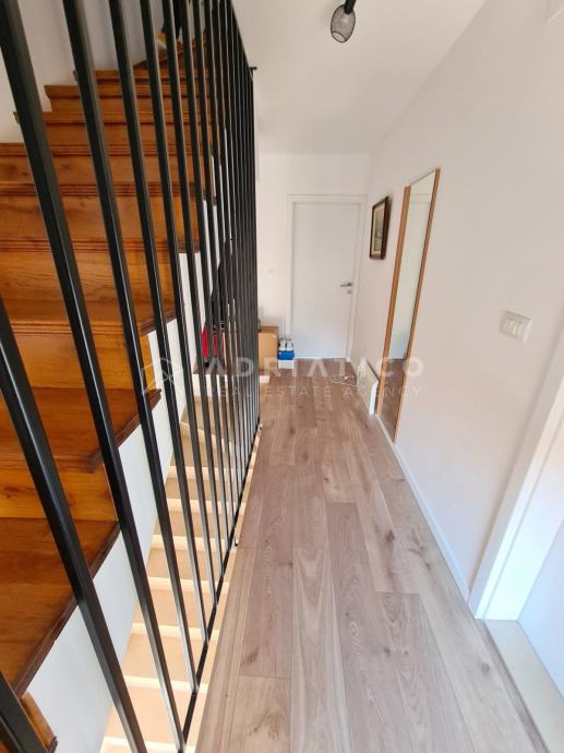 U prizemlju se nalazi studio apartman od 40m2 kao zasebna stambena jedinica sa izlazom na manju terasu (atrij), dok se na prvom i drugom katu nalazi prekrasni i 2020. godine u potpunosti uređen i opremljen dvosobni stan sa 2 terase ukupne površine 95m2.