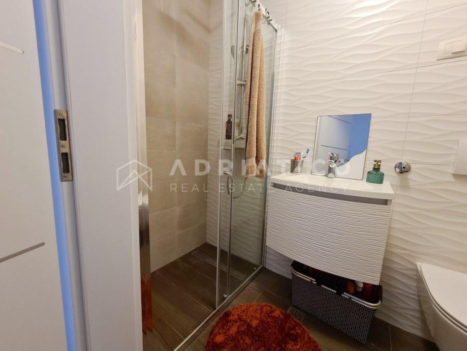 Ova uredna, svijetla i prostrana nekretnina smjestila se u mirnom predjelu grada, u blizini svih potrebnih sadržaja i na samo 10ak min hoda od mora ili centra.