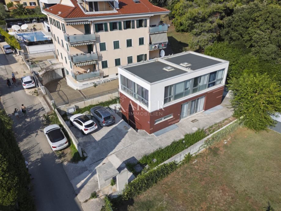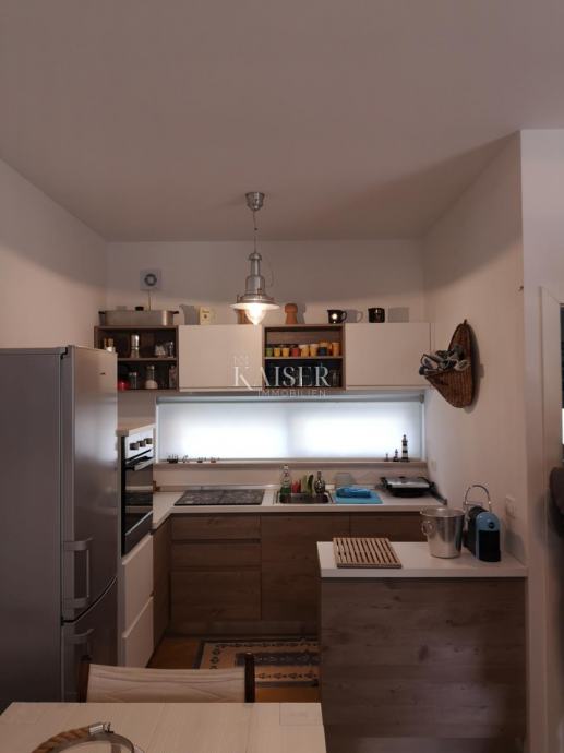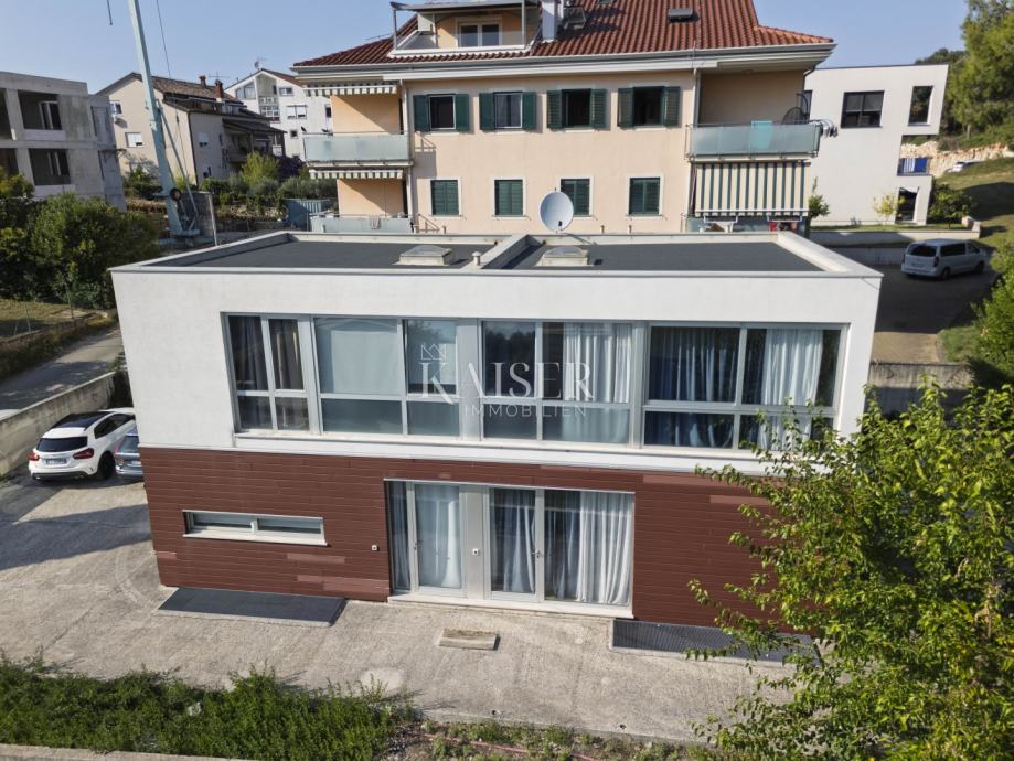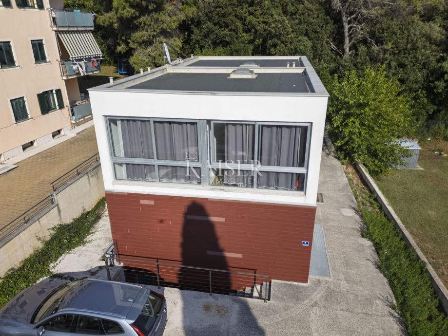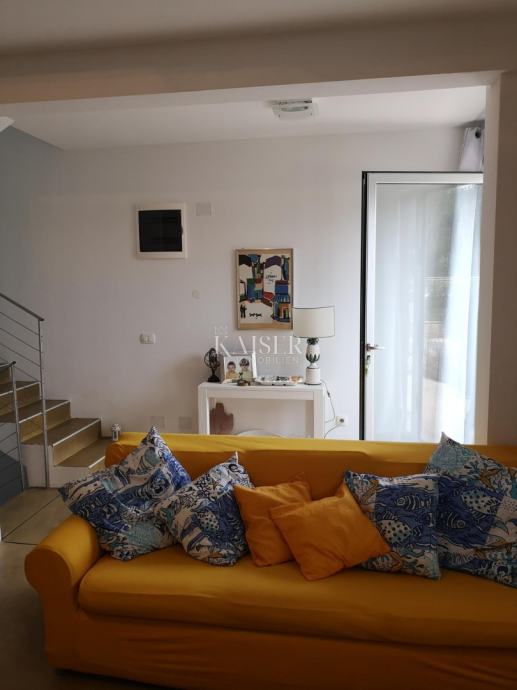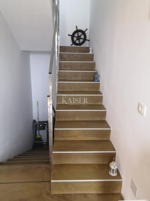 Kuća se prostire na tri etaže i ukupno 145 m²( mogučnost nadogradnje podkrovlja). Sastoji se od podruma, koji je pripremljen za studio apartman, prizemlja s prostranim dnevnim boravkom, koji je spojen s kuhinjom u poluotvorenom konceptu i s vanjskom terasom. Na prvom katu se nalaze dvije spavaće sobe. Terasa se nalazi na samom ulazu u kuću te je spojena balkonskim vratima s kuhinjom i dnevnim boravkom. Kroz cijelu kuću je provedeno podno grijanje te instalirani klima uređaji.