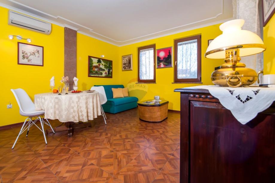 Kuća se sastoji od glavnog objekta s velikim obiteljskim stanom, dva apartmana i sobe za najam, dodatne kuće u dvorištu od 59m2 te podruma od 60 m2.