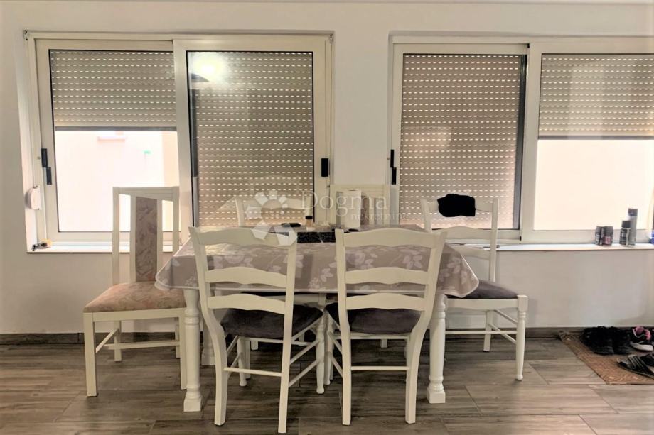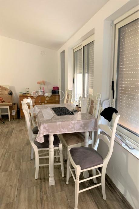 Prizemlje čini stan s jednom spavaćom sobom, dnevnim boravkom s blagovaonicom, kuhinjom i kupaonicom veličine 70 m². Stan je useljiv i može se odmah koristiti. Na prvog katu smješten je studio apartman od 20 m² s balkonom i velikom terasom. Studio je u roh-bau izvedbi.